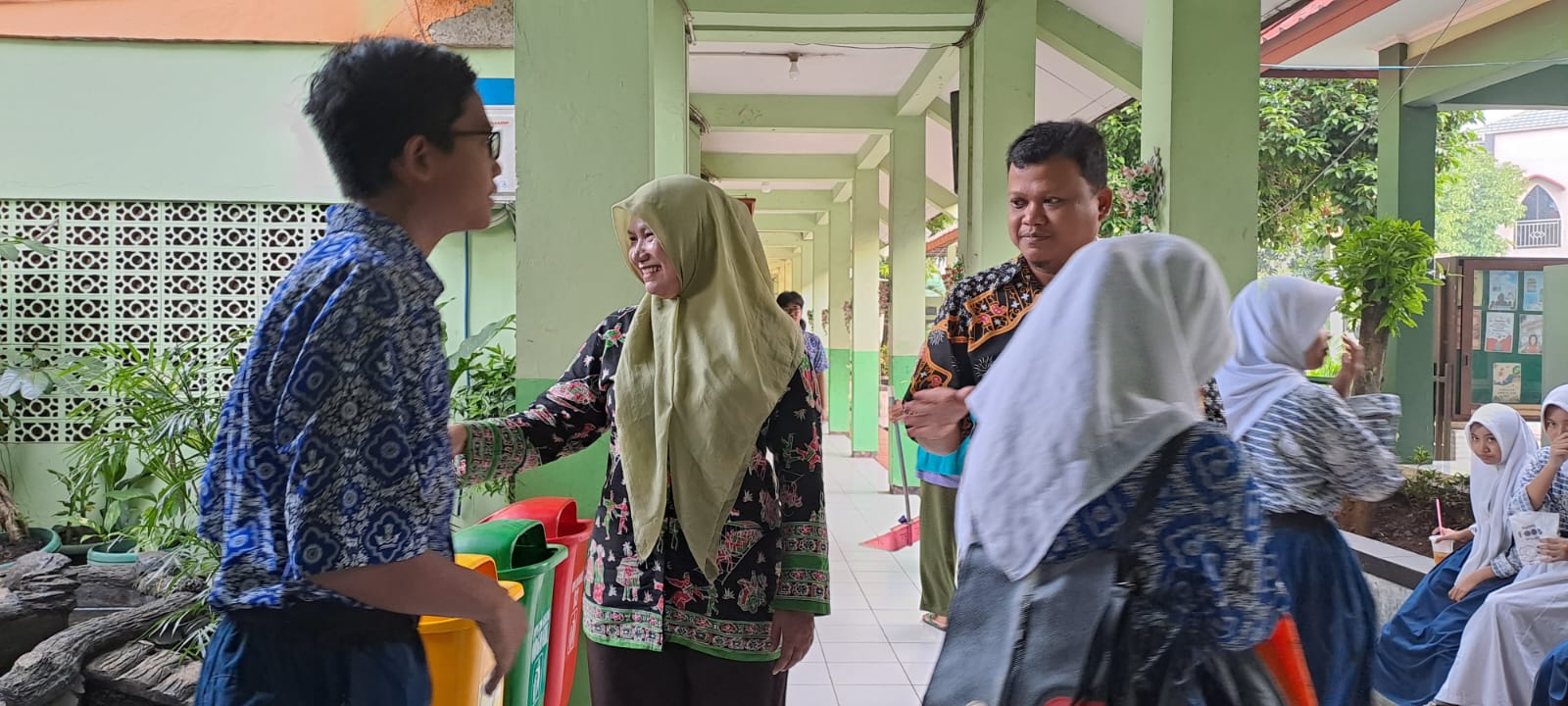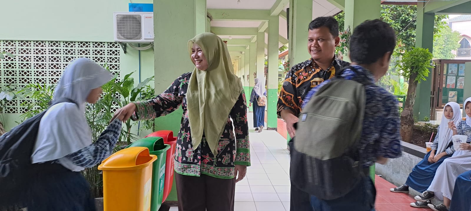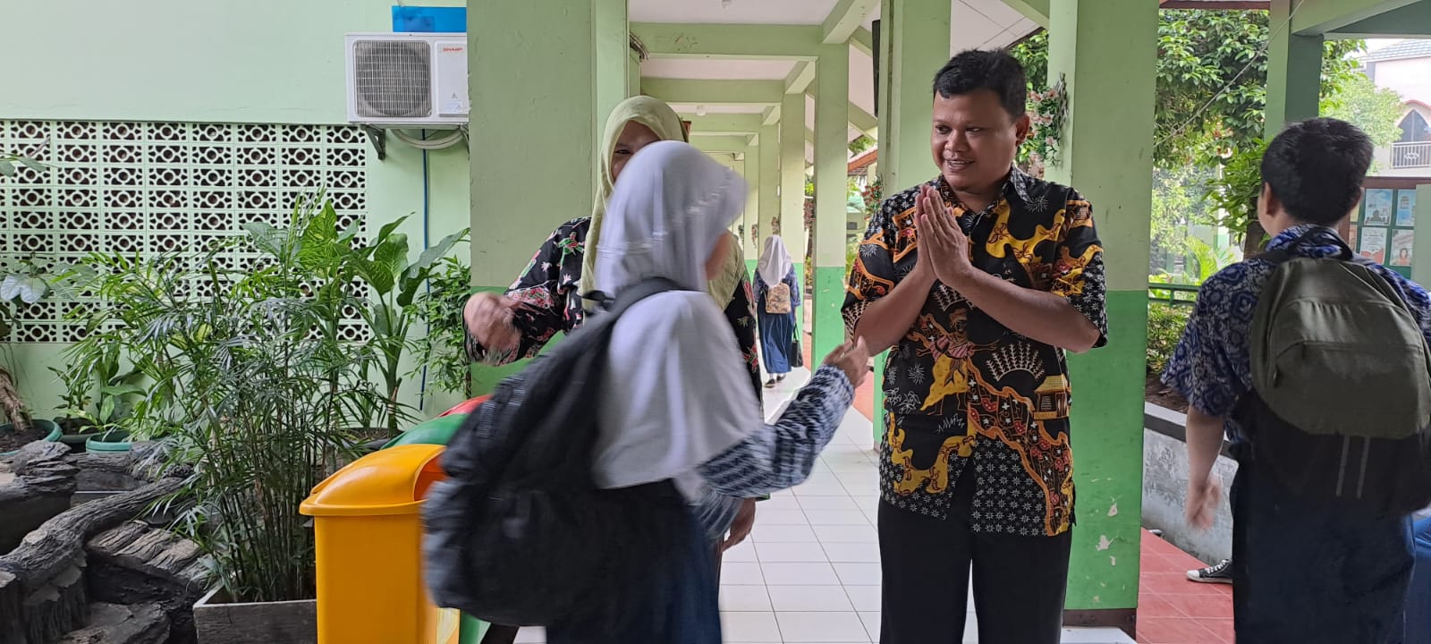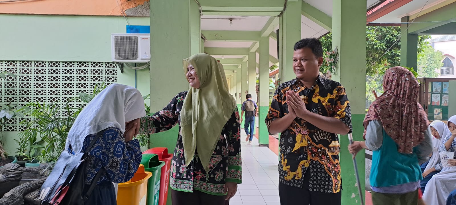 Penyambutan pagi peserta didik dengan 5S ( Senyum, Sapa, Salam, Sopan dan Santun)